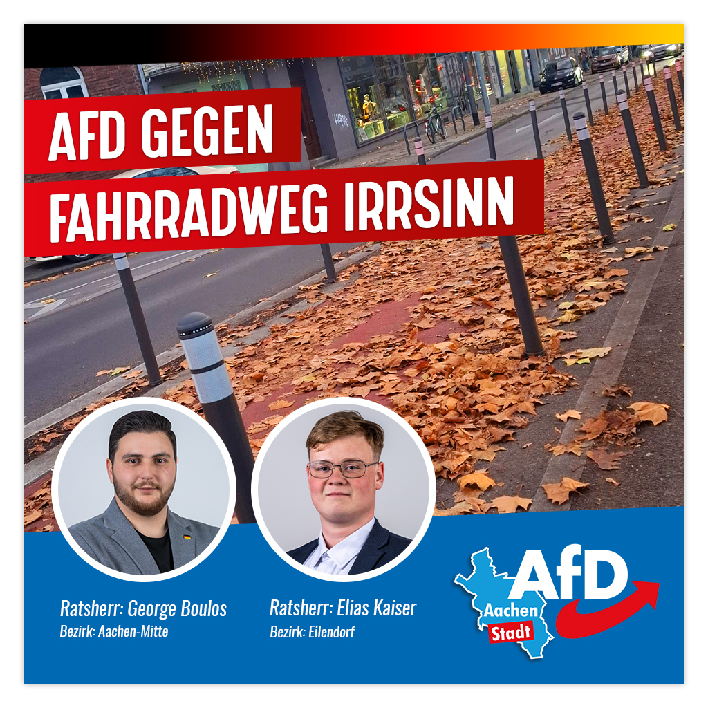 Aachen-Mitte – Die Ratsherren George Boulos und Elias Kaiser (AfD) fordern dringende Lösungen für die Reinigung von durch Poller gesicherten Radwegen, um die Verkehrssicherheit zu gewährleisten. 1. Problemstellung und Anfrage an die Bezirksvertretung Aachen-Mitte Die